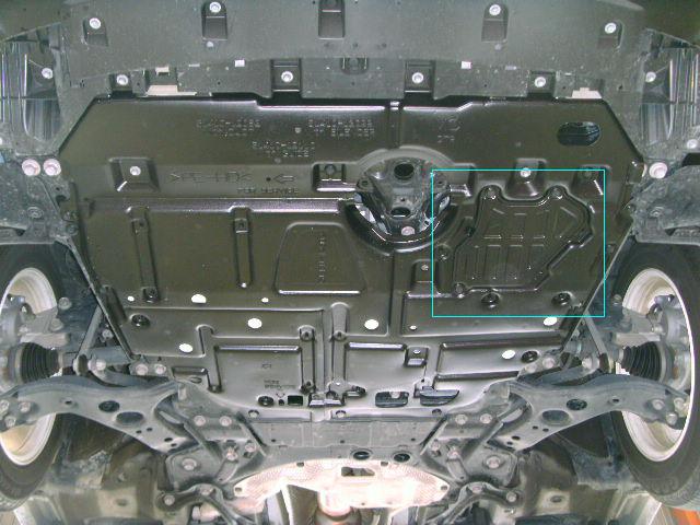 交換後新しいアンダーカバーですが、元は空いていた青枠の部分もカバーでふさがれて空力アップ!!これはうれしい誤算!この箇所もふさぎたいと思っていたので・・・真中の丸いジャッキポイント部もついでにふさぎたいくらいだが・・・・物が良くなって更に空力アップの一石二鳥ですな!