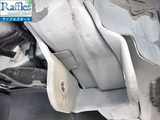マフラー等余計な物を外していき、リアアクスルビームを降ろします! (汗)