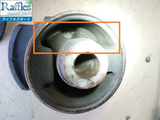 新品ブッシュを圧入したリアアクスルビームをボディに装着・・・