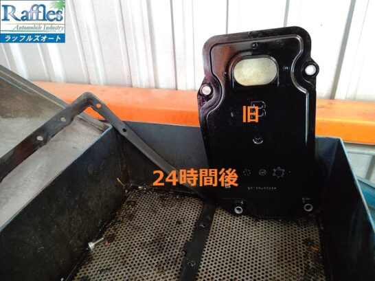 廃油受けに丸1日、ストレーナーを立てかけて置くと