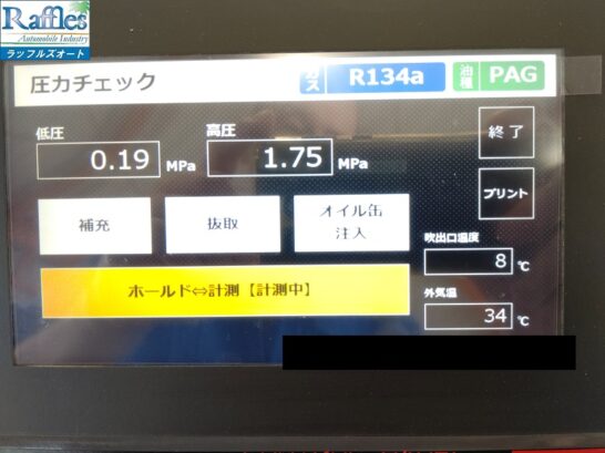 エアコンガスクリーニングとは、車両のエアコン回路からガスを回収し、確実な真空引きによるエアコン内乾燥と高純度再生されたフロンガスを正確に計量充填することによって、全ての車両においてエアコンサイクルのバランスを整える事を目的とする作業です。