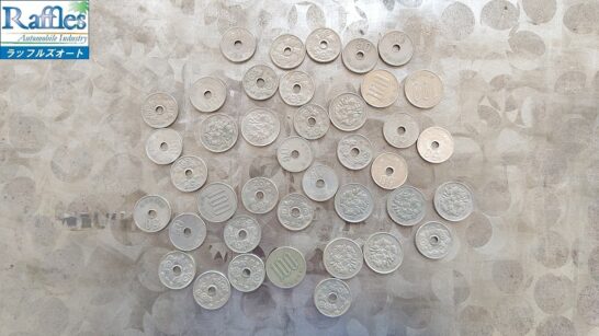 硬貨の汚れは、指の皮脂が付着したものや酸化で変色したもの、錆びや経年劣化などです。
