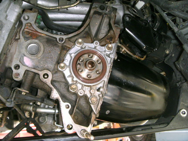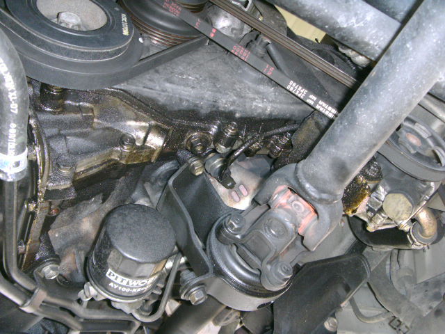 エンジンフロント側も・・・カムオイルシール・クランクフロントオイルシールもアウトかな・・・。