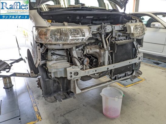 冷却水を抜きながら、作業しやすいように顔面を剥ぐ!