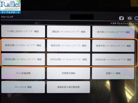 トヨタ ヴェルファイア ハイブリッド AAHH40 VELLFIRE HYBRID シートベルト警告音 解除 車両 設定変更 カスタマイズ 大阪府 大阪市より