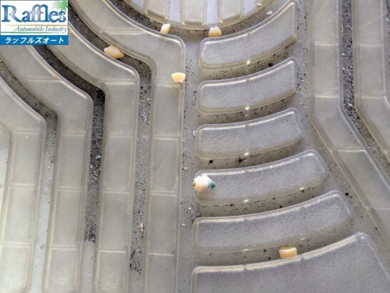 フロアマットの上に、ピーナッツのような物体がチラホラ