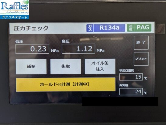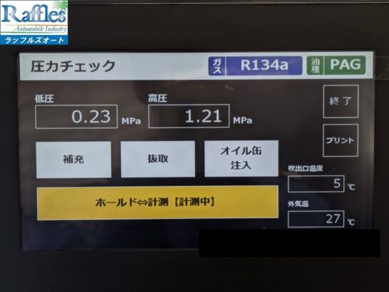 アイドル状態では冷えイマイチで、走りだせばなんとか冷える状態ですね。