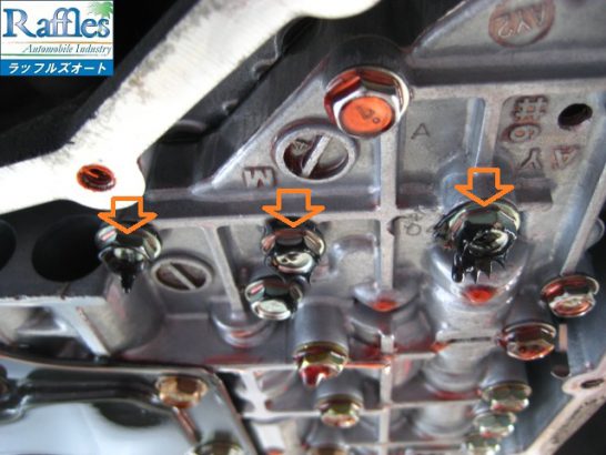 オイルパン底ヒットしたせいで、バルブボディのボルトと
